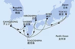 Gemimiz saat 11:00'de gemimiz Kagoshima limanına yanaşacak..Gemide alacağımız sabah kahvaltısı sonrasında kişisel ihtiyaçlar için serbest zaman. Burada arzu edenler rehberlerinin ekstra olarak düzenleyeceği Kagoshima turuna katılabilirler. 12. YY dan 1860 lardaki Meji Restorasyon dönemine kadar kudretli Shimazu klanına ev sahipliği yapan şehir Satsuma yarımadası ve yükseltilerine kurulmuştur. Tarihi ve coğrafik özelikleri yanısıra Samurai destanlarına ev sahipliği yapmıştır. Şehir aynı zamanda Jeotermal sular yönünden zengindir. Şehrin sembölü olan Sakura Jima volkanı bu oluşumlarda payı büyüktür. Iso Bahçeleri, Kamikaze müzesi gibi yerler şehrin görülemeye değer yerleridir. Gemimiz akşam 19:00’da limandan ayrılacak.